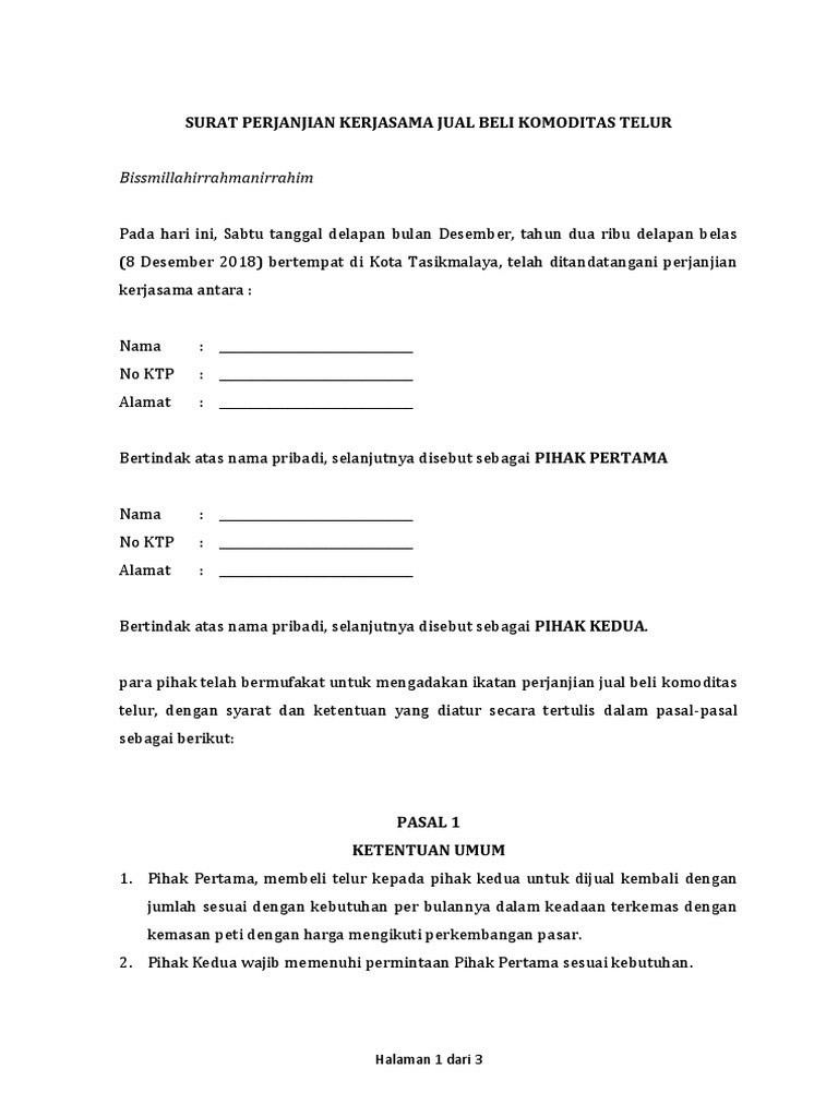 Surat perjanjian kerjasama kemitraan usaha memuat perjanjian kedua belah pihak untuk mengembangkan usaha serta menjalin kemitraan yang baik. Pihak pertama berhak mengambil keuntungan bersih (net profit) sebesar 35% dari usaha usaha peternakan ayam, dan apabila usaha tersebut mengalami kerugian ditanggung oleh kedua belah. Yang bertanda tangan di bawah ini pasal 1 dalam surat perjanjian kerjasama ini pihak kedua meminjam uang sebesar rp. Bahkan, bukan tidak mungkin anda medapatkan keuntungan lebih dari 773 juta dari hasil budidaya ayam petelur. Contoh surat perjanjian kerjasama investasi modal usaha ini digunakan sebagai keterangan dan pengikat dua belah pihak yang melakukan kerjasama. Kerangka proposal berguna agar anda dapat memahami. Contoh surat perjanjian kerjasama untuk usaha dagang. Hal ini dilakukan supaya terhindar dari kontroversi yang terjadi di kemudian hari. Contoh surat perjanjian kerjasama usaha diatas dilakukan oleh dua pihak yaitu antara pihak pertama dan pihak kedua. Surat kerjasama atau kerap juga disebut dengan istilah mou (memorandum of understanding) adalah surat yang dibuat untuk tujuan melakukan sebuah. Contoh surat perjanjian kerjasama diperlukan untuk anda yang ingin membuat surat perjanjian bisnis. Usaha ayam petelur yang baik dan benar adalah kunci untuk mendapatkan keuntungan berlipat. Sebenarnya ada banyak contoh surat perjanjian yang beredar di internet.